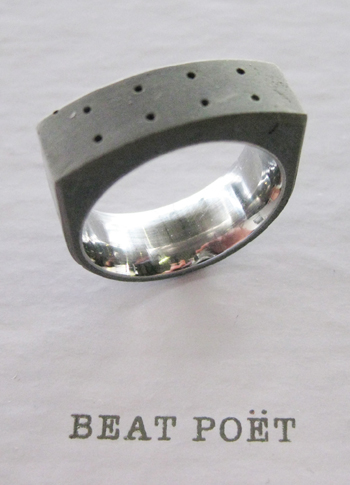 A marca francesa de acessórios Batucada, que se divulga como inspirada pelas praias brasileiras, lançou recente coleção em plástico ecológico e reutilizado. Maleáveis, adaptam ao corpo e aos movimentos, dando a impressão de tatuagens. Todos os formatos são orgânicos, como flores e animais. Disponíveis em diversas cores, as pulseiras podem ser utilizadas como gargantilhas e vice-versa. Criados em colaboração com 22DesignStudio, os anéis Beat Poët são feitos de resíduos de concreto, unidos a uma liga metálica. Inspirados na arquitetura brutalista, são disponibilizados em cores naturais e versões em preto. Apesar de serem à prova d´água, a marca admite que as peças podem sofrer rachaduras devido ao processo natural de expansão térmica. Outra marca que utilizou concreto em suas criações foi a Metsa, estúdio de criação conceitual canadense. São brincos em formato de pérola, moldados à mão, com detalhes em prata. Com o tempo e exposição à água e contato com a pele, as peças mudam de cor. (Créditos: UseFashion)